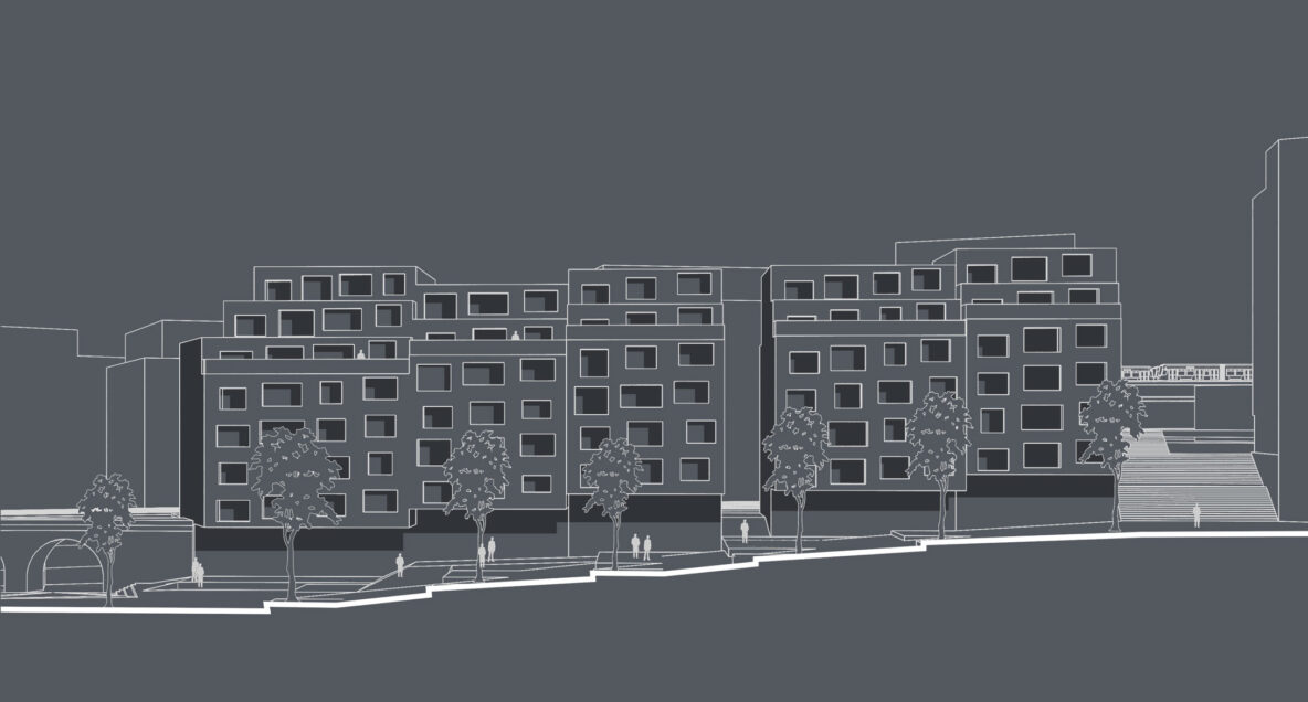 Bay windows add value to every apartment, making even the smallest units more characteristic and attractive. Bay windows let in more daylight and offer more diverse views of the surrounding area. At the same time, they form a very original composition on the facades. With strong horizontal and vertical rhythms, the 360° complex looks good from various angles. Cantilevered bay “columns” also create an attractive public passage at the street level, with accentuated dominants on the corners.