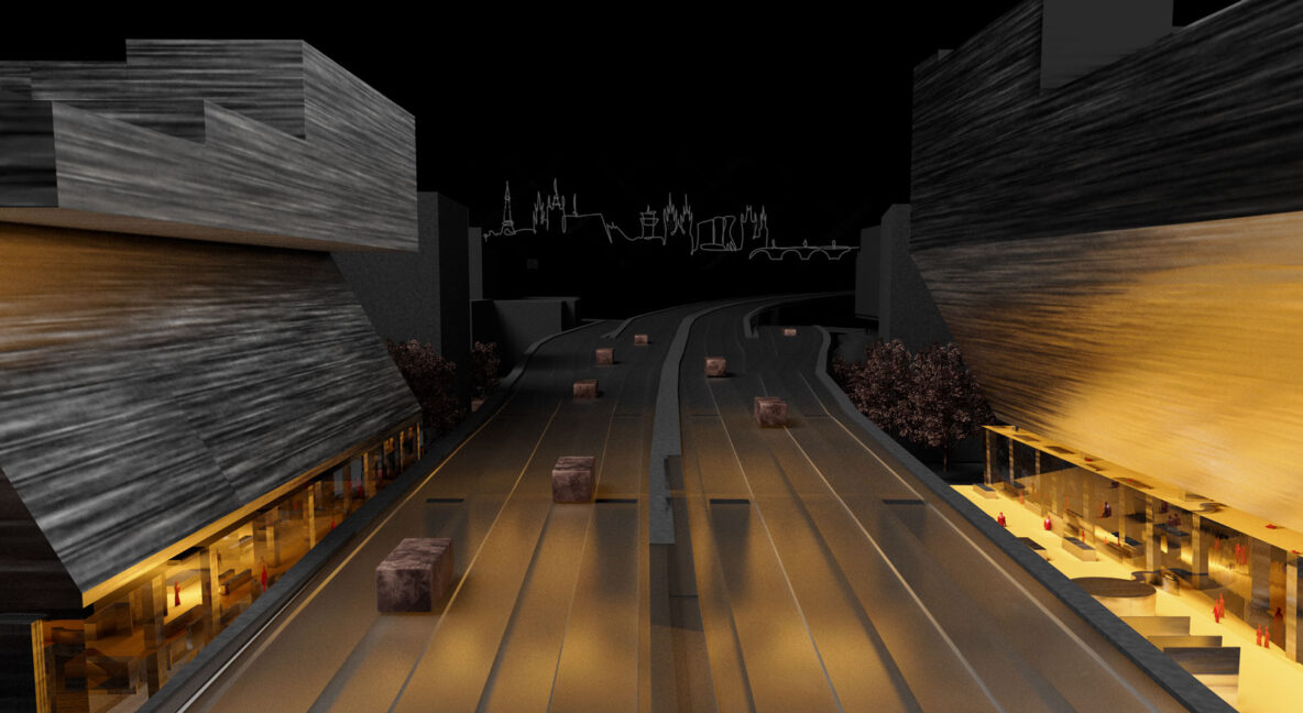 The Port of Prague concept has a large public multifunctional lobby at its foundation. This generous, easily accessible ground-floor plate unites the parcels on both sides of the flyover into one coherent whole, while also reinforcing the street structure of the Florenc master-plan. Urban lobby is optimal for fairs, markets, and conventions of all sorts, but it also acts as an infrastructure of convenience during bad weather. Its presence transforms the back facades of B01 buildings into primary addresses of the new area.